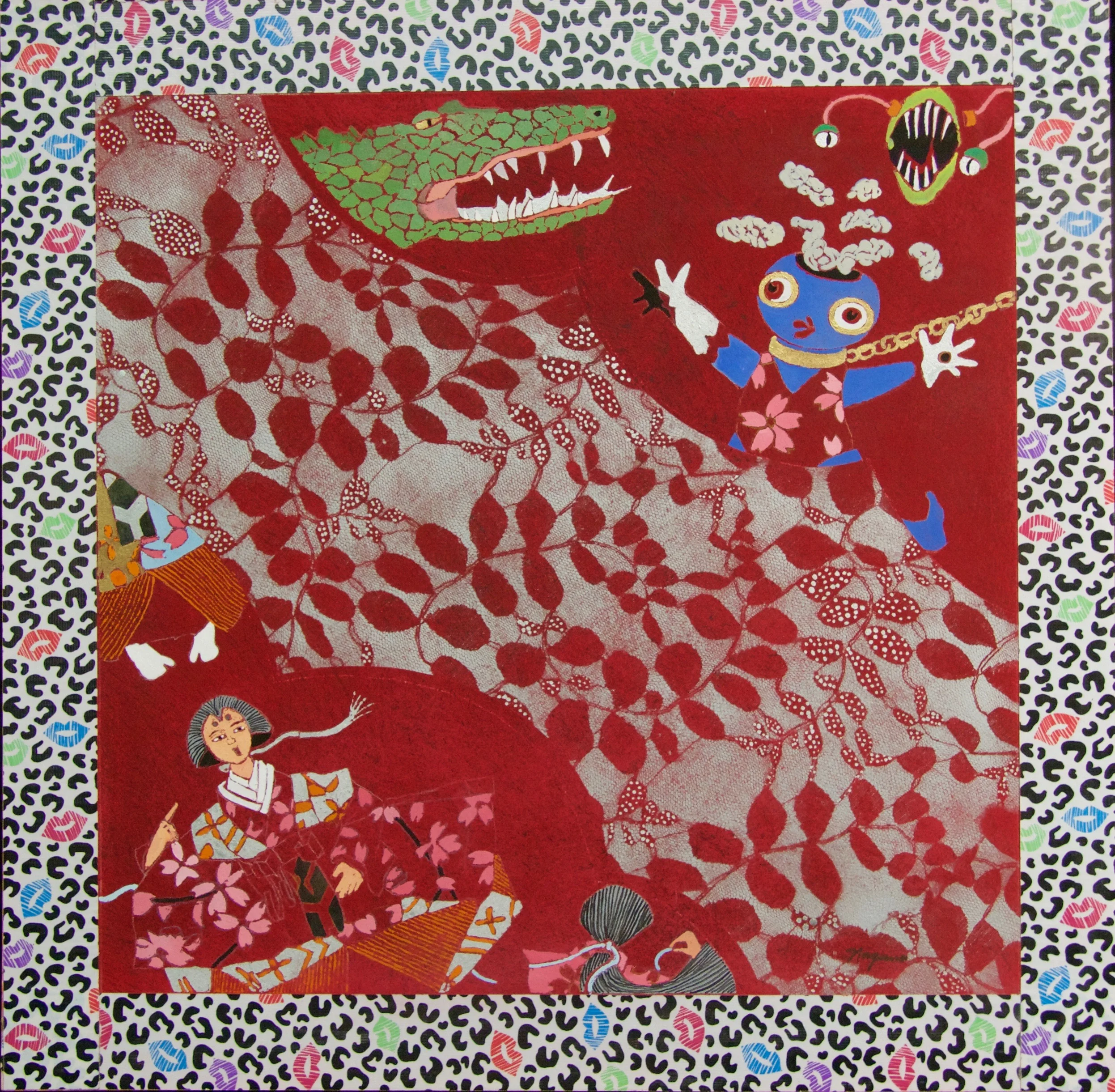 In my Hungry Ghost/Oni series of mixed medium paintings, I extend an openness of heart, mind and hand to the repressed, neglected, cast-out aspects of myself which haunt the netherworld between wake and sleep. For many years, I reacted to the energies of this Shadow Self as enemies to my happiness and well-being. As I began to extend compassion to myself and to all the energies within me, the netherworld that I had feared and resisted began to give form to itself. Through the expression of these energies, I discovered that rather than undermine or destroy happiness and well-being, given freedom and the acceptance to exist, a surge of energy and life and creativity was released. I felt whole and happy.